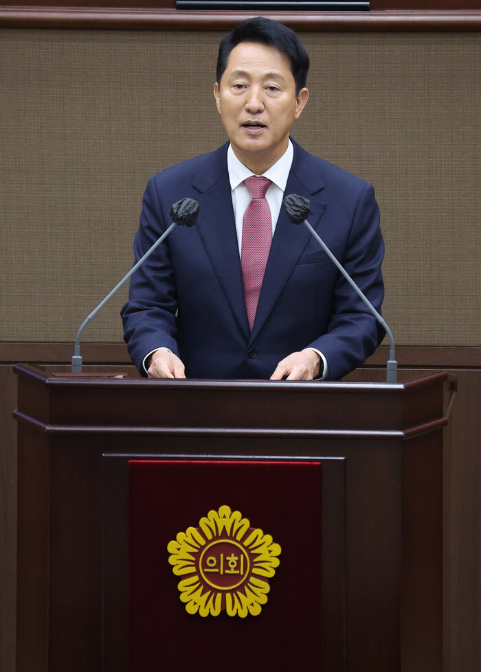 Seoul Mayor Oh Se-hoon speaks during an ordinary session of the metropolitan city's assembly in the South Korean capital on June 10, 2025. (Yonhap)