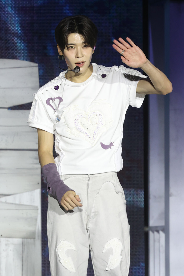 Sion, a member of South Korean boy group NCT WISH, attends a showcase to promote the group's third mini album "Color" in Seoul on Sept. 2, 2025. (Yonhap)
