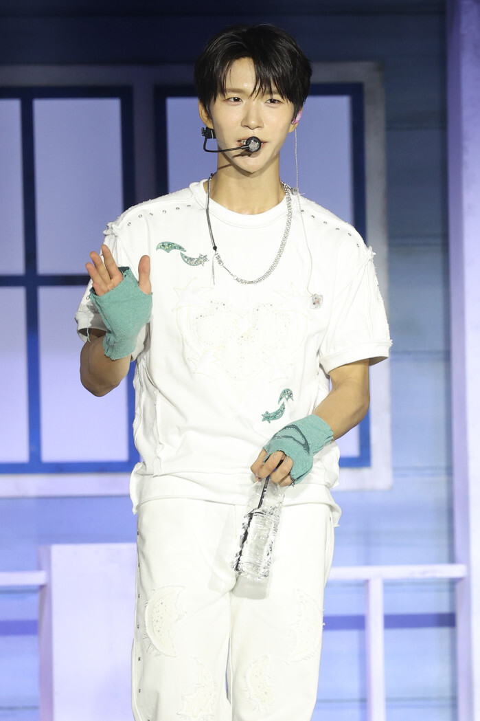 S. Korean boy group NCT WISHJaehee, a member of South Korean boy group NCT WISH, speaks during a showcase to promote the group's third mini album "Color" in Seoul on Sept. 2, 2025. (Yonhap)(END)