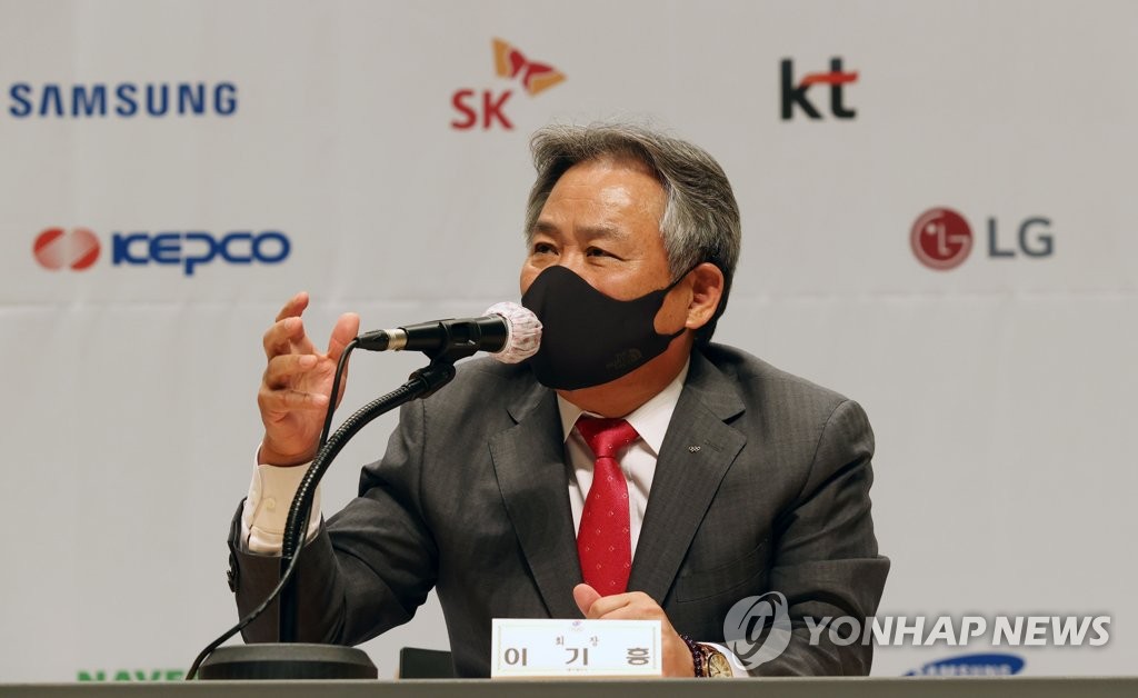 | ▲ Lee Kee-heung, head of the Korean Sport & Olympic Committee, speaks during a press conference marking the 100-day countdown to the Tokyo Olympics at the National Training Center in Jincheon, 90 kilometers south of Seoul, on April 14, 2021. (Yonhap) |