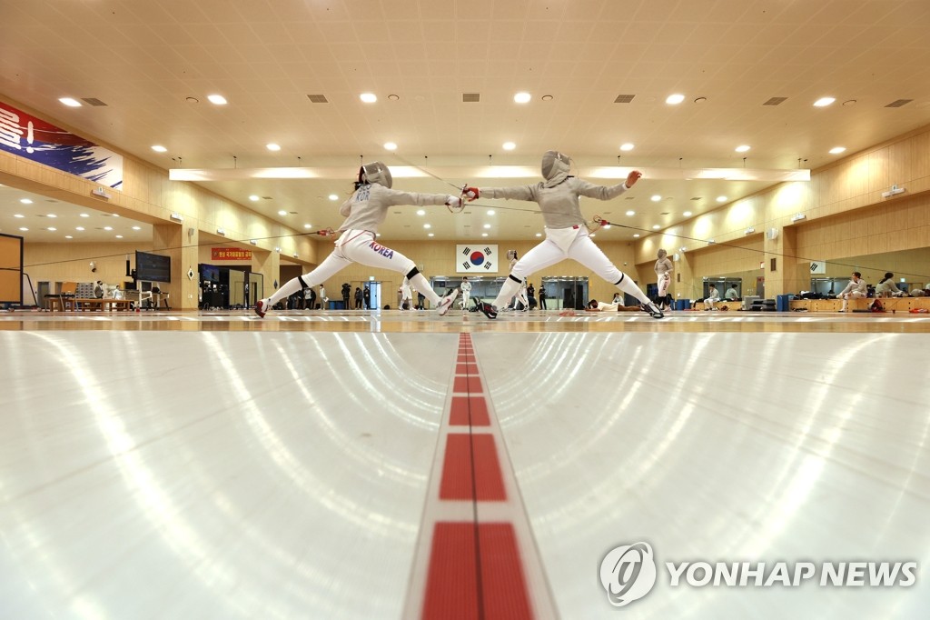 | ▲ South Korean fencers train at the National Training Center in Jincheon, 90 kilometers south of Seoul, on April 14, 2021. (Yonhap) |