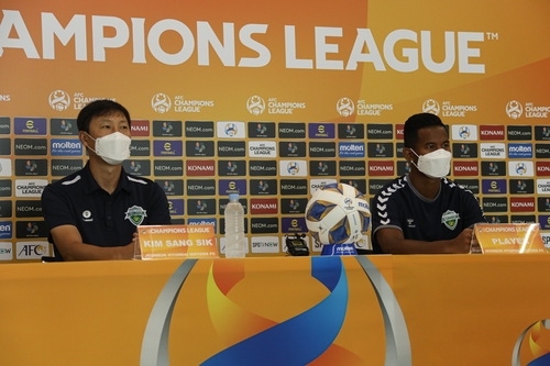 전북은 태국 BG 빠툼 유나이티드와의 2021 아시아축구연맹(AFC) 챔피언스리그(ACL) 16강전을 하루 앞두고 14일 비대면 유튜브 기자회견을 했다.