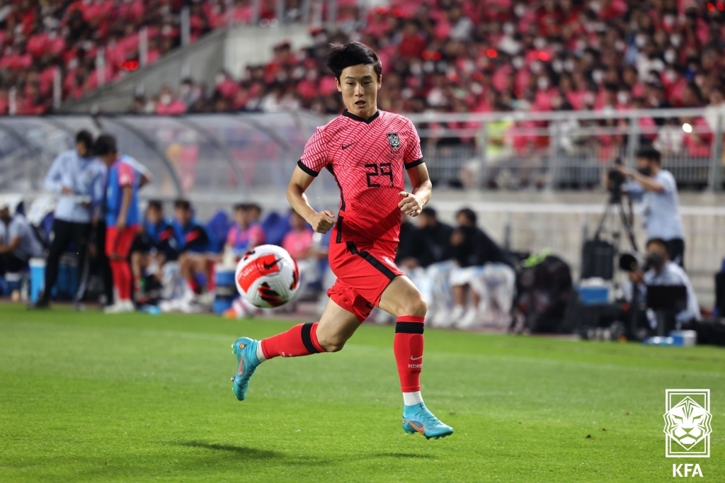 "I was looking for ways to help the team any way I can, since we were losing at the moment," Um said Sunday at an online press conference from the National Football Center in Paju, Gyeonggi Province. South Korea are preparing for their next friendly match, against Egypt, on Tuesday. "I was pretty surprised that my pass led to the goal. I didn't want to hurt the team, and I was lucky to set up that goal."