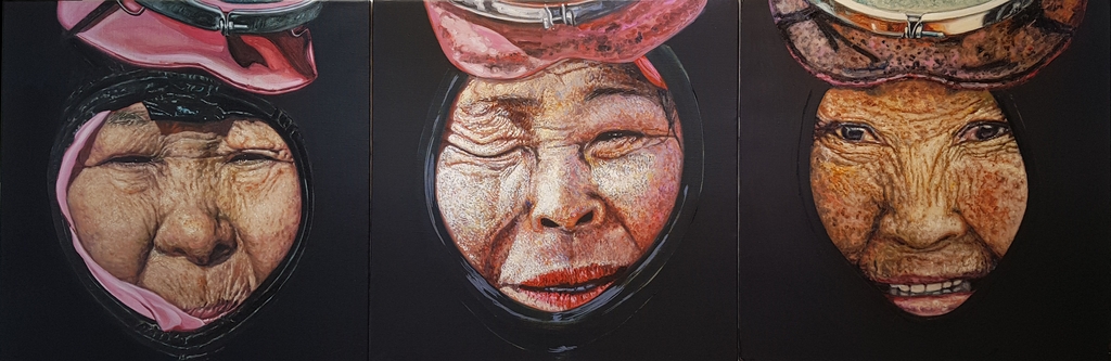 (제주=연합뉴스) 백나용 기자 = 수십년 간 제주 바다의 강렬한 햇살과 거센 파도와 바람에 맞서 살아온 해녀의 얼굴들이 캔버스에 옮겨졌다.