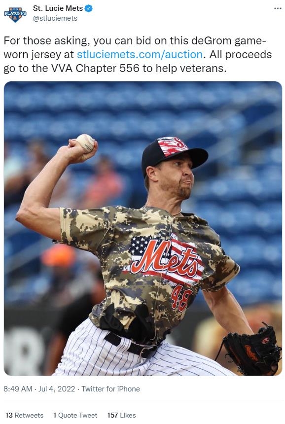 | ▲ 제이컵 디그롬의 재활 등판을 알린 세인트루시 구단 트위터 [세인트루시 구단 트위터 캡처. 재판매 및 DB 금지] |