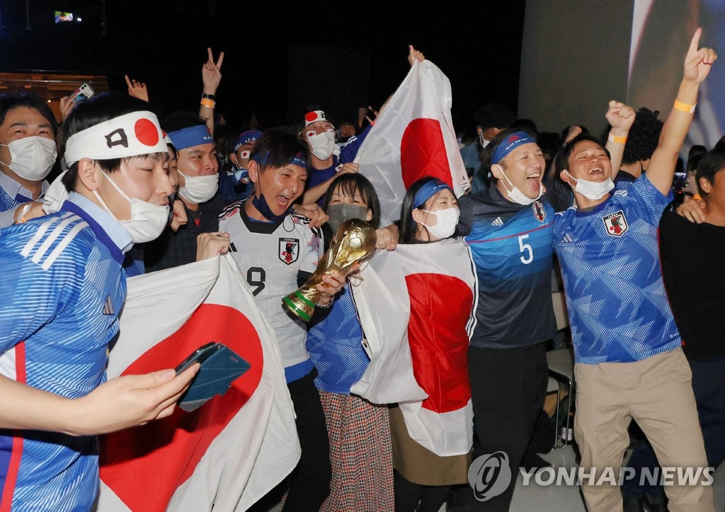 | ▲ '일본 카타르 월드컵 16강 진출'에 환호하는 도쿄 시민들 (도쿄 AFP=연합뉴스) 2일(현지시간) 일본 도쿄에서 시민들이 자국 축구대표팀이 스페인에 승리를 거두고 2022 카타르 월드컵 16강 진출에 성공하자 환호하고 있다. 이날 일본은 카타르 알라이얀의 할리파 인터내셔널 스타디움에서 열린 카타르 월드컵 조별리그 E조 최종 3차전에서 2-1로 스페인을 꺾었다. 2022.12.02 ddy04002@yna.co.kr |