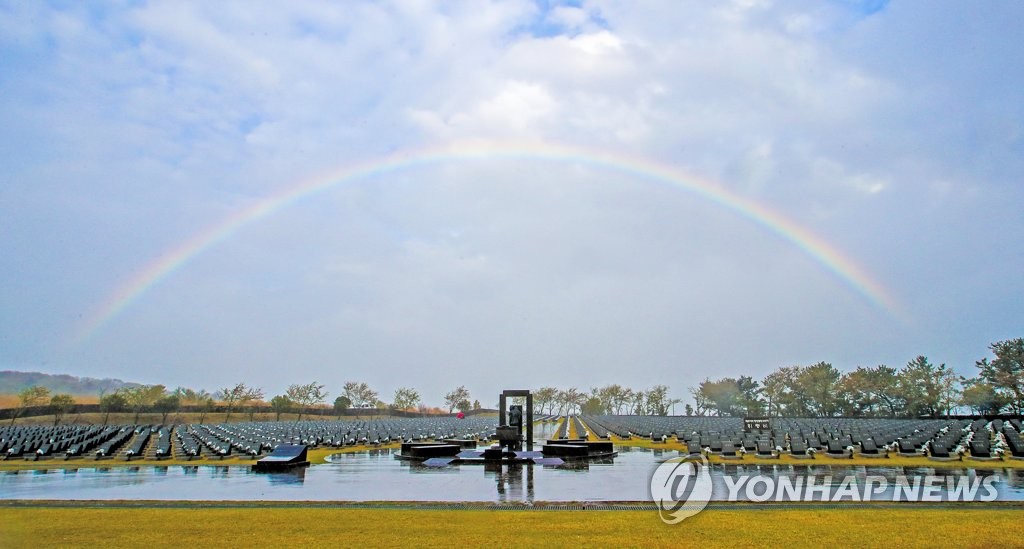 ▲ 행방불명인 표석 위로 뜬 무지개 [연합뉴스 자료 사진]