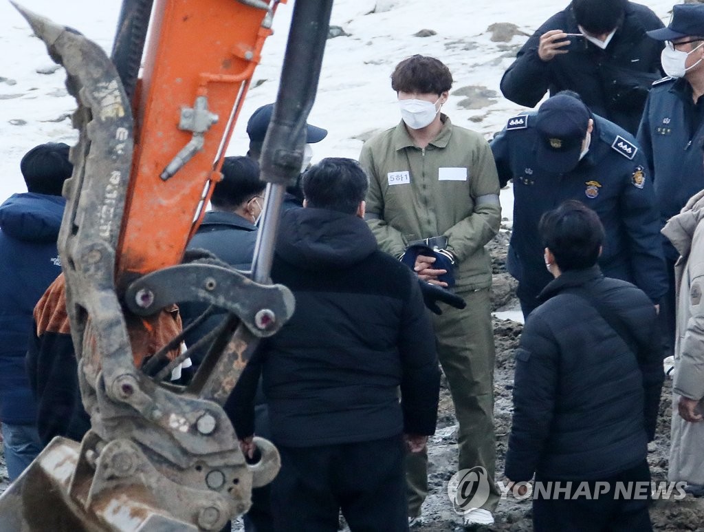 | ▲ 검찰, 이기영과 현장검증 실시 (파주=연합뉴스) 김병만 기자 = 택시 기사와 동거녀를 살해한 혐의로 구속된 이기영이 6일 오후 경기도 파주 공릉천변에서 검찰 관계자들과 현장검증을 하고 있다. 2023.1.6 kimb01@yna.co.kr |