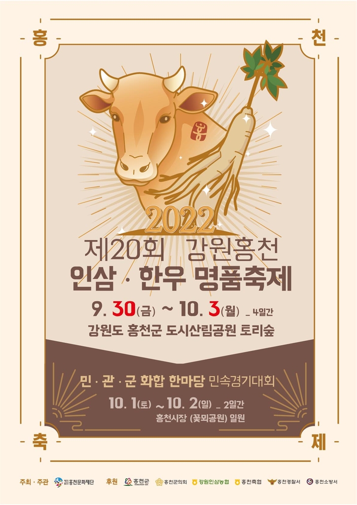 이 축제는 6년근 강원홍천 인삼과 지역 한우브랜드인 늘푸름홍천한우를 한자리에서 맛볼 수 있는 행사다.