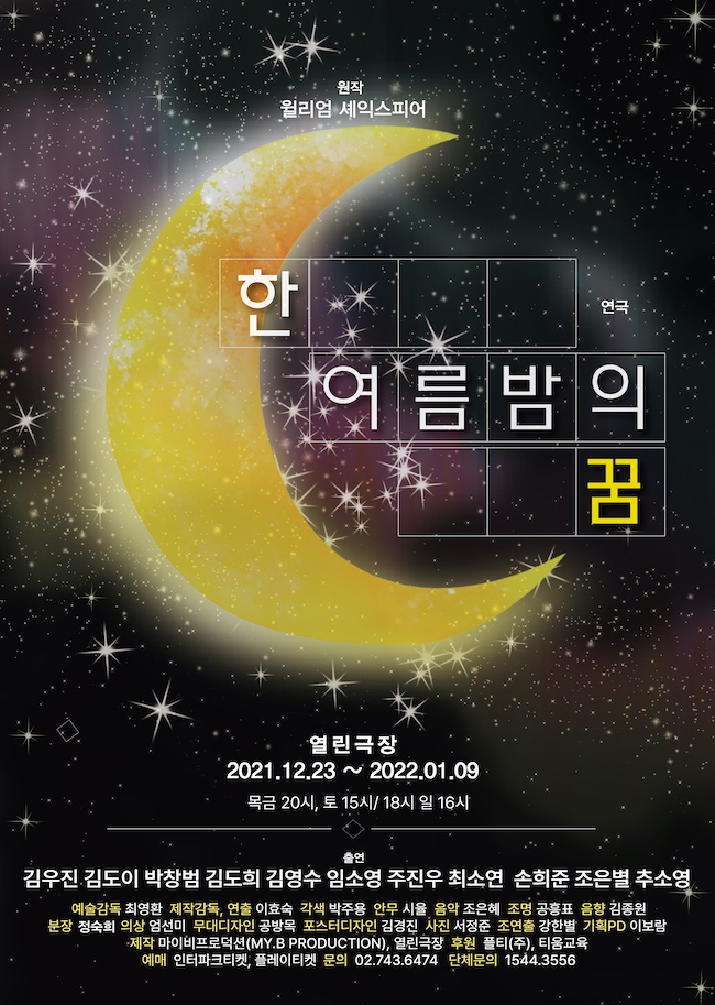 (서울=연합뉴스) 임동근 기자 = ▲ 로맨틱 판타지 연극 '한 여름밤의 꿈' = 셰익스피어의 낭만 희극 '한 여름밤의 꿈'이 오는 23일부터 내년 1월 9일까지 대학로 열린극장 무대에 오른다.
