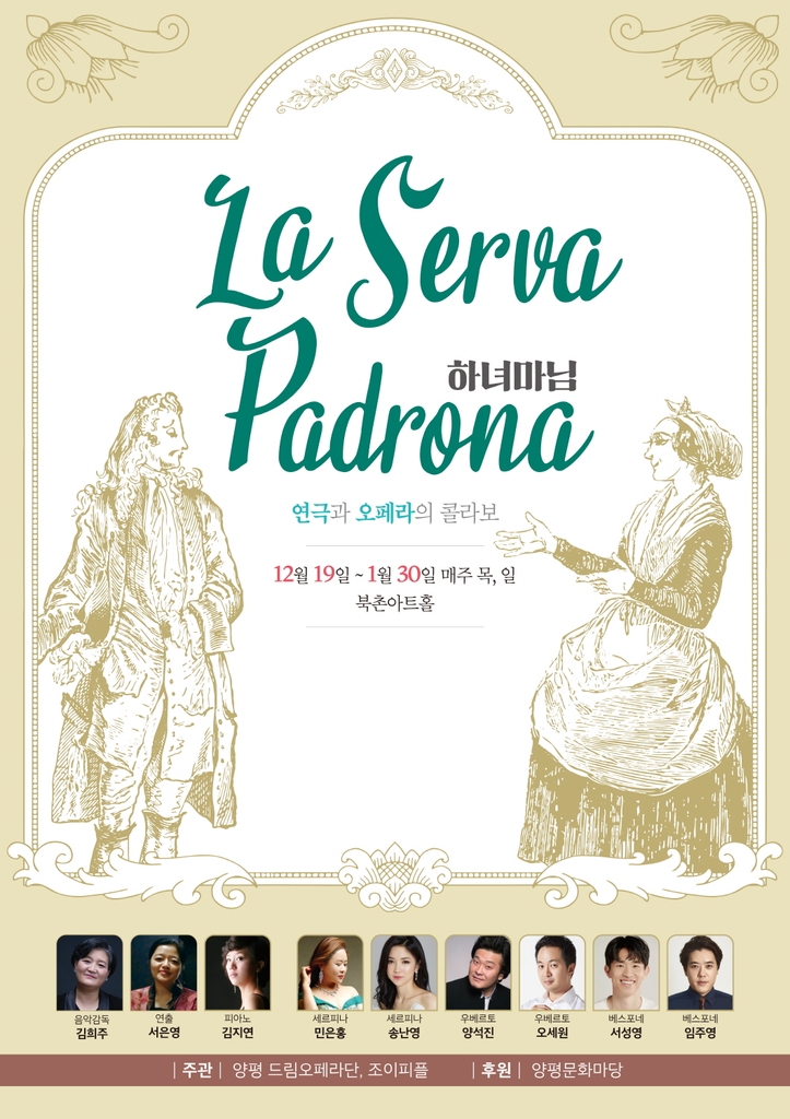 ▲ 소극장 오페라 '하녀마님' = 드림오페라단은 소극장 오페라 '하녀마님'(La Serva Padrona)을 오는 19일부터 내년 1월 30일까지 서울 종로구 북촌아트홀에서 공연한다.