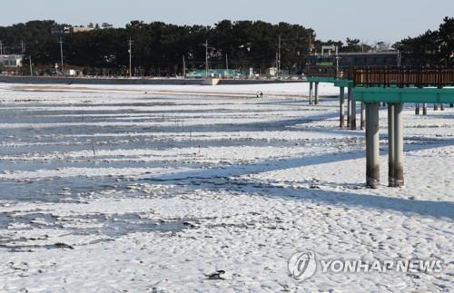 | ▲ 꽁꽁 언 바닷가 (화성=연합뉴스) 홍기원 기자 = 매서운 한파가 계속된 18일 경기도 화성시 서신면 궁평항 바닷가가 얼어 있다. 2022.12.18 anadu@yna.co.kr |