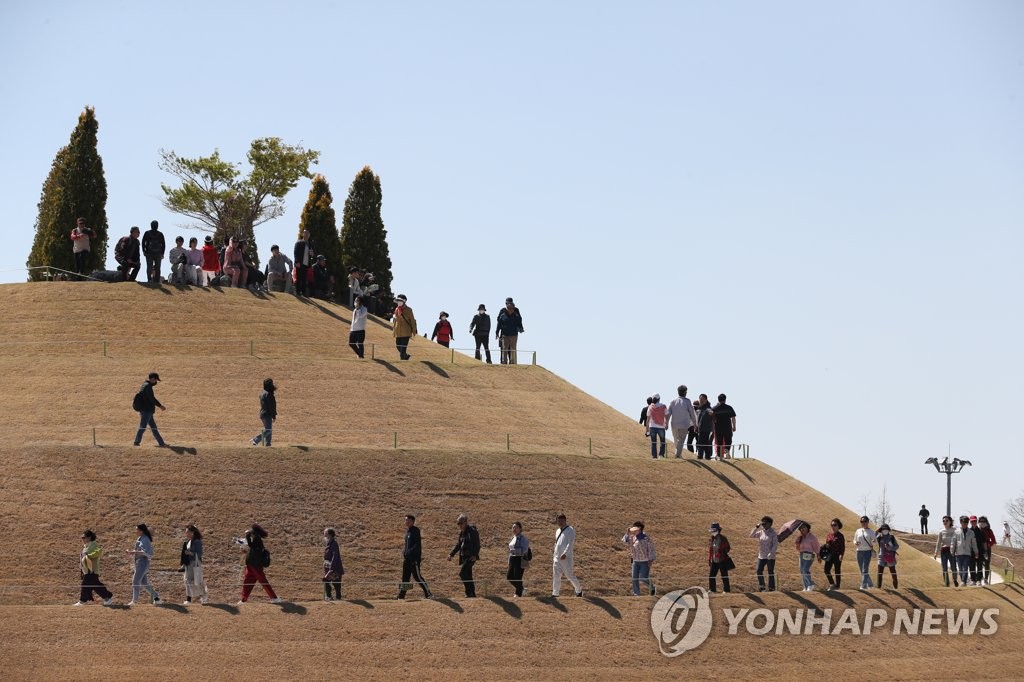 방문객들은 형형색색의 봄꽃을 배경으로 사진을 찍고, 녹색 잔디밭으로 변한 아스팔트 도로를 거닐면서 봄날의 추억을 만들었다.