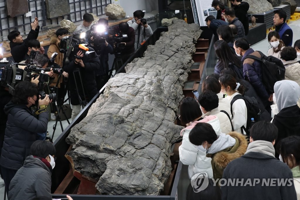 눈앞에서 대형 화석을 본 관람객들은 인증 사진을 남기느라 바쁜 모습이었다. 한 중년 여성은 휴대전화 화면에 화석이 다 담기지 않는 듯 이리저리 각도를 조절하며 찍기도 했다.