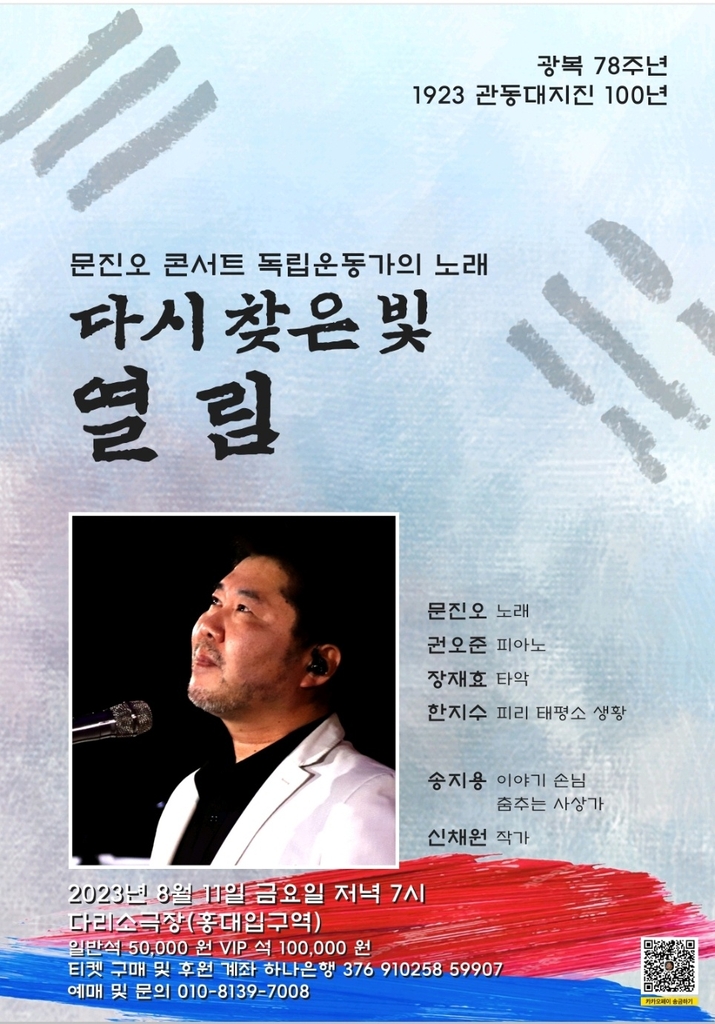 문진오, 광복절 맞아 독립운동가 노래 콘서트