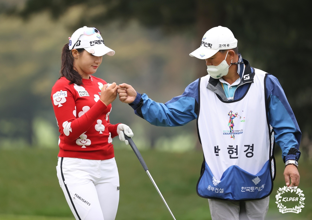 | ▲ 캐디인 부친과 주먹을 마주치는 박현경. [KLPGA 제공. 재판매 및 DB 금지] |