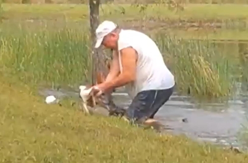 | ▲ 악어에게 물린 반려견 구하는 리처드 윌뱅크스(74) [댄 미첼 페이스북 동영상 캡처. 재판매 및 DB 금지] |