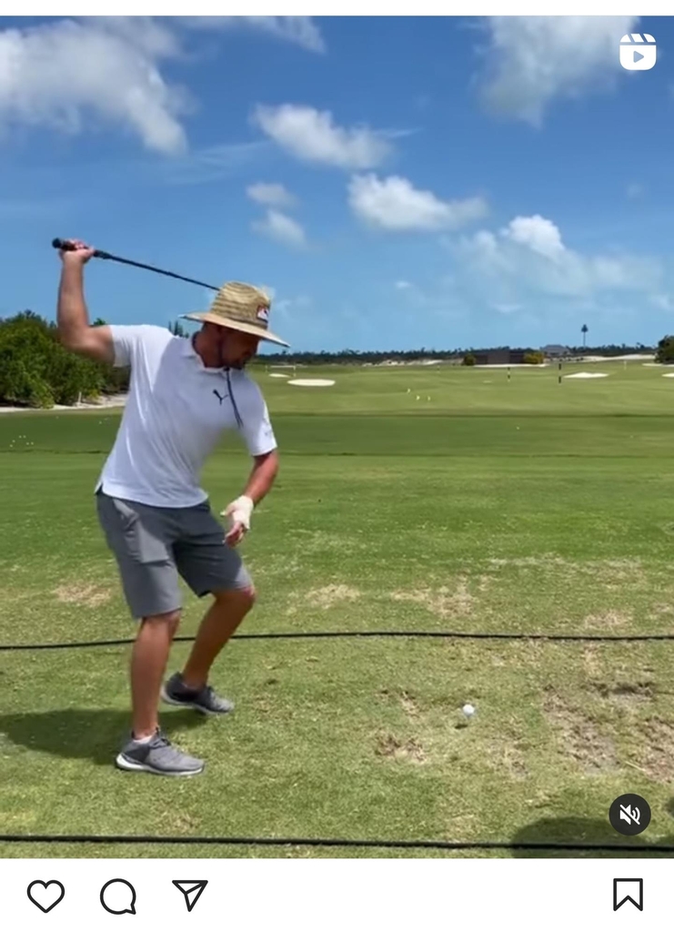| ▲ 한 손으로 스윙 연습을 하는 브라이슨 디섐보 [디섐보 인스타그램 캡처. 재판매 및 DB 금지] |