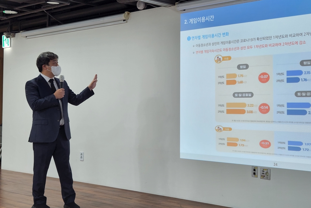 문화체육관광부와 한국콘텐츠진흥원은 15일 서울 중구 CKL기업지원센터에서 '게임 이용자 패널·임상의학 연구 결과발표회'를 열고, 지난 2020년과 지난해 두 차례 진행된 게임 이용자 대상 연구 결과를 발표했다.