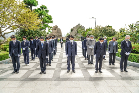 올해는 코로나19 확산을 예방하기 위해 해마다 고하도 이충무공 유적지에서 열렸던 제전식은 취소하고, 기념사업회 임원 위주로 동상 참배로만 진행됐다.