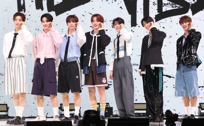 South Korean boy group NEXZ poses for a photo during a showcase in Seoul on May 20, 2024, to promote the release of the group's first single album "Live The Vibe." (Yonhap)