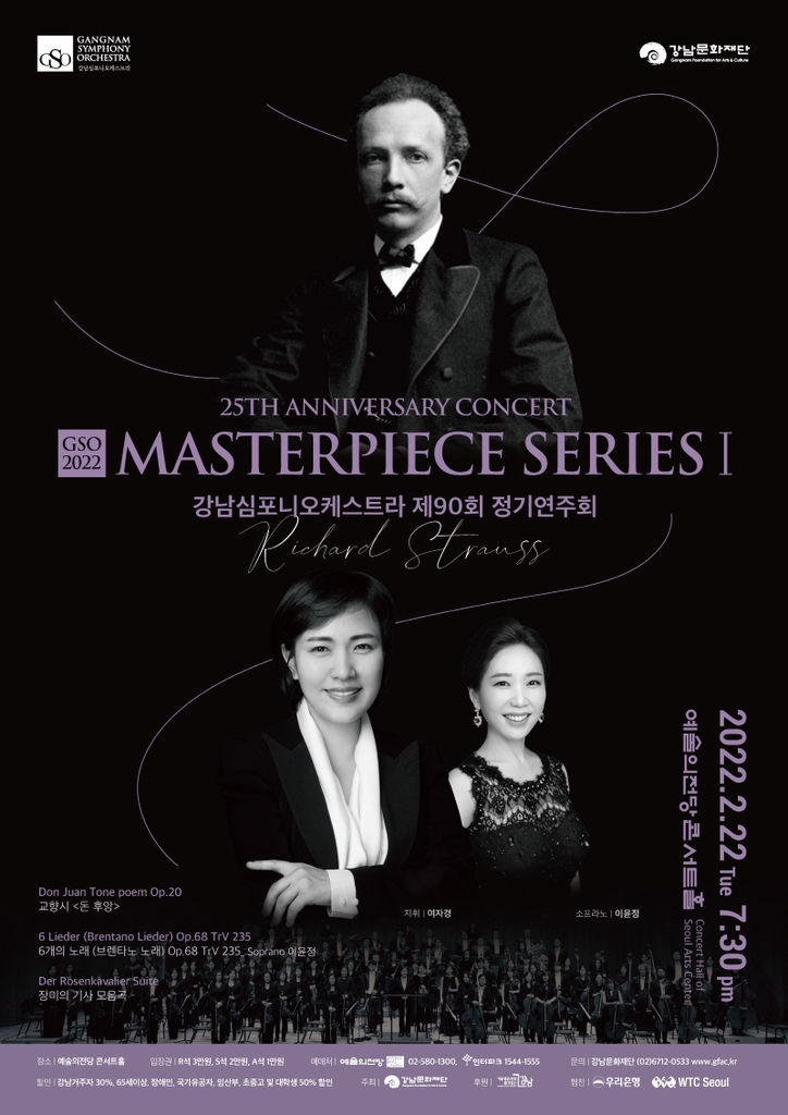 여자경 예술감독이 이끄는 강남심포니는 리하르트 슈트라우스의 교향시 '돈 후앙', '6개의 노래(브렌타노 노래)', '장미의 기사 모음곡'을 연주한다. 소프라노 이윤정이 함께 한다.