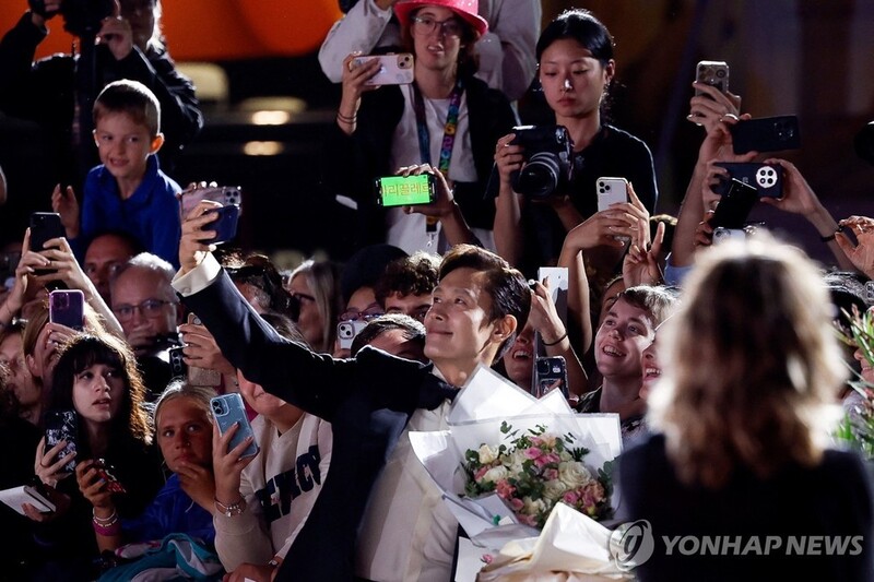 이병헌은 넷플릭스 시리즈 '오징어게임' 등으로 높아진 인기를 실감하게 했다. 살라 그란데 극장 앞을 메운 팬들은 연신 "리"를 외쳤다. 이병헌의 전작 '악마를 보았다'(2010) 포스터를 들고 그의 사인을 기다리는 팬도 있었다. 이병헌은 팬들과 사진을 찍고 사인하며 환호에 화답했다.