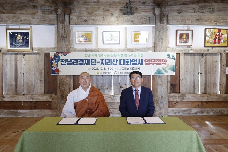 두 기관은 지난 8일 전남 구례군 마산면 화엄사 경내에서 협약식을 열고 사찰을 활용한 다양한 관광 프로그램을 운영하기로 협의했다.