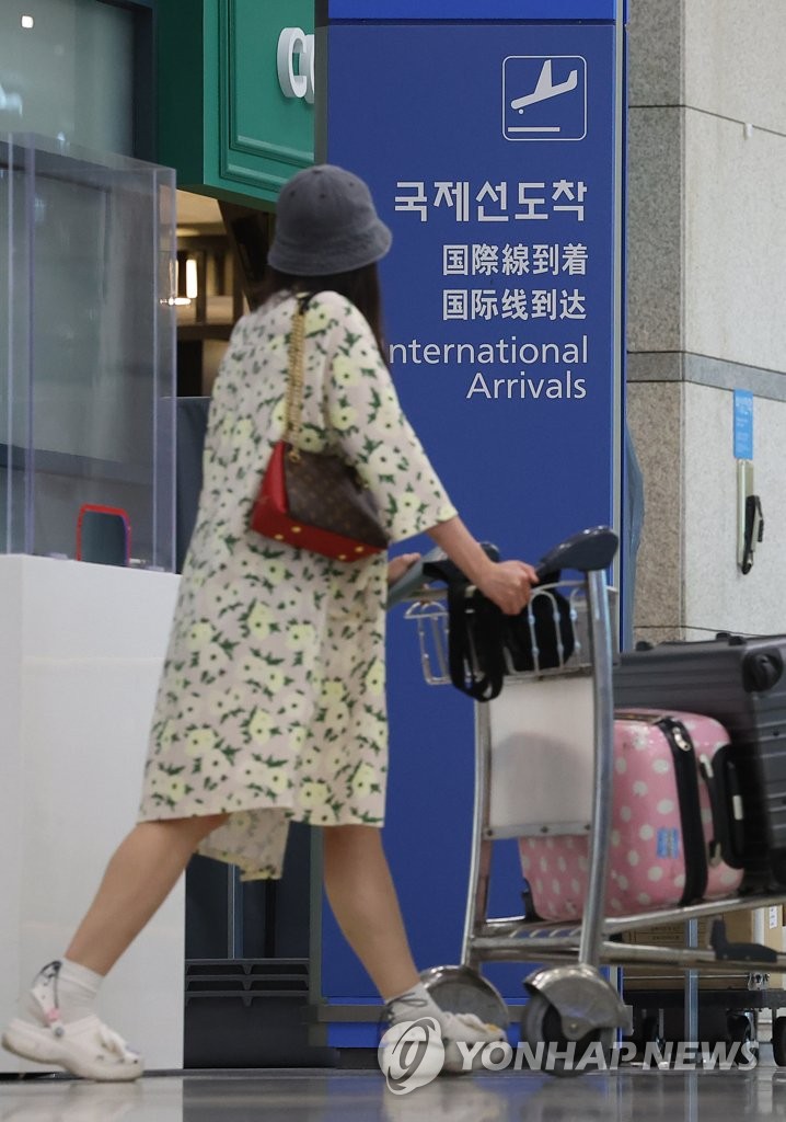 | ▲ S. Korea reports 1st two suspected cases of monkeypox A passenger arriving from overseas enters the arrival lobby of Terminal 1 at Incheon airport, west of Seoul, on June 22, 2022, as health authorities reported a patient, who recently arrived in the country, had been infected with monkeypox. (Yonhap) |