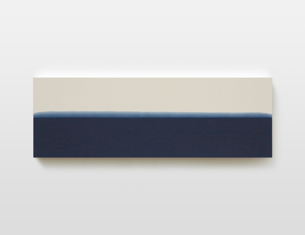 이인현(65)은 자신이 직접 제작한 캔버스에 붓을 대지 않고 염색하는 기법으로 바다를 연상하게 하는 작업을 선보인다.