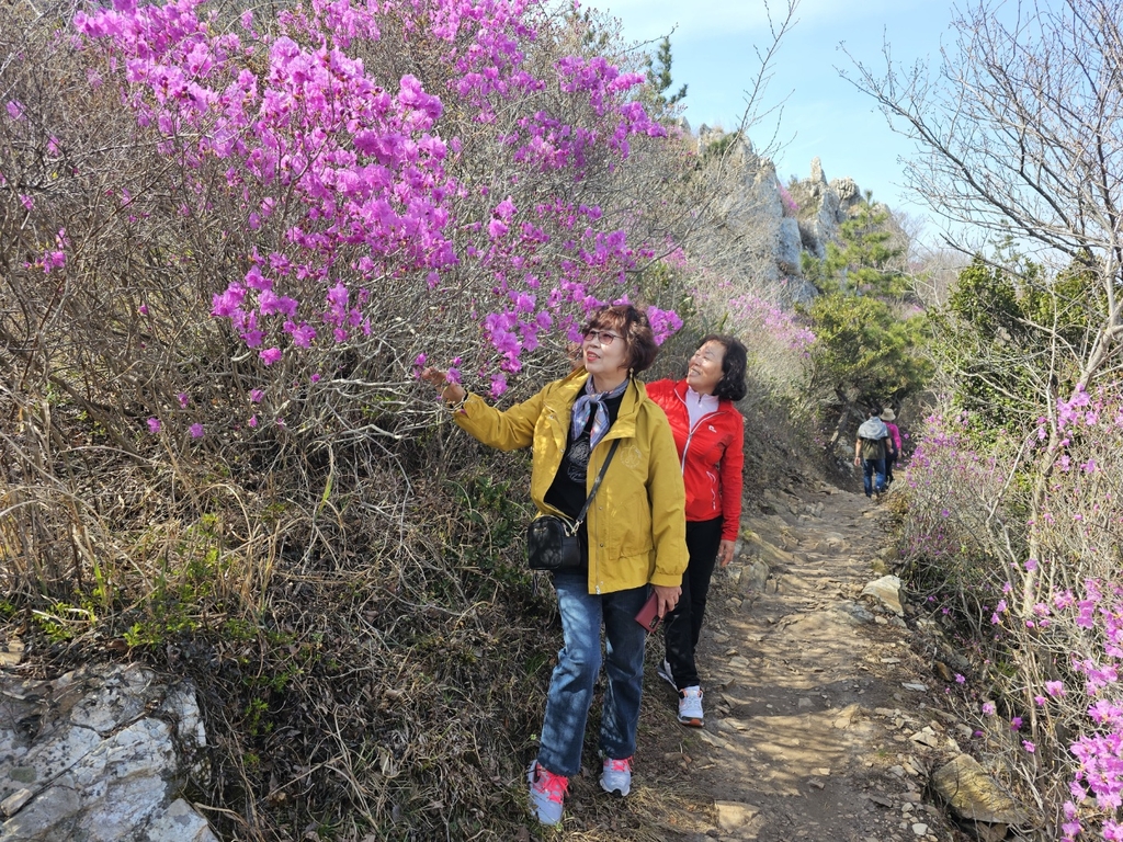 (해남=연합뉴스) 공룡의 등뼈 같은 기암괴석이 가파른 자리, 다도해를 건너온 봄바람에 바위틈마다 진달래 연분홍빛이 물들어 간다.