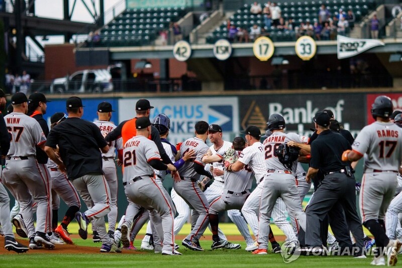| ▲ 벤치클리어링을 벌인 샌프란시스코와 콜로라도 선수단 [게티이미지/AFP=연합뉴스] |