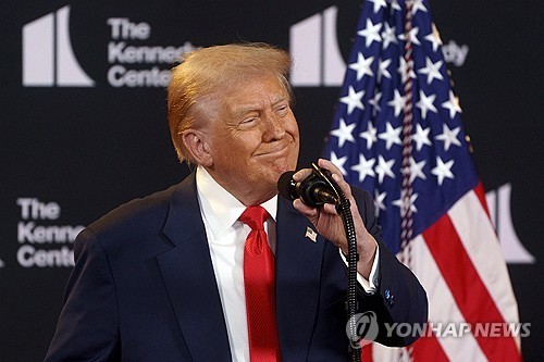 | ▲ 케네디센터 공로상 수상자 직접 발표하는 트럼프 (워싱턴DC UPI=연합뉴스) 2025년 8월 13일 미국 수도 워싱턴DC의 케네디 공연예술센터에서 센터 이사장인 도널드 트럼프 미국 대통령이 직접 제48회 케네디센터 공로상 수상자 명단을 발표하고 있다. (Photo by Will Oliver/UPI) 2025.8.31. |