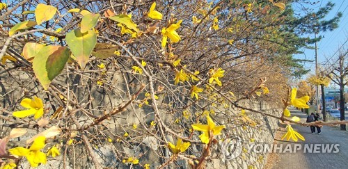 | ▲ 지난 12일 춘천에 핀 개나리 [연합뉴스 자료사진] |