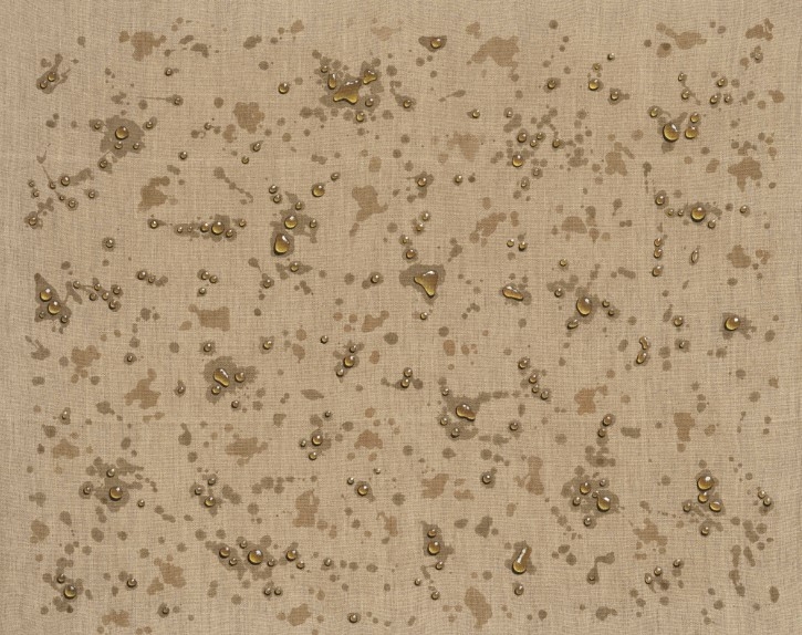Waking in the Parisian suburban barn that served as his studio and home, he saw the canvas he had sprayed with water the night before to remove old paint. As sunlight streamed through a small window, the water droplets on the canvas were shining glamorously.