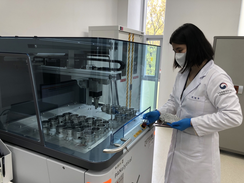 | ▲ X-선분석실 (대전=연합뉴스) 임동근 기자 = 15일 대전 국립문화재연구소 내에 개관한 문화재분석정보센터 X-선분석실에 설치된 X-선형광분석기. 2021.4.15 dklim@yna.co.kr |