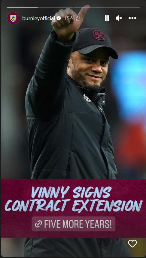 번리 구단은 8일(이하 한국시간) 소셜미디어(SNS)를 통해 콩파니 감독과 5년 연장 계약에 합의했다고 밝혔다.