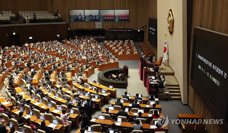 (서울=연합뉴스) 홍정규 기자 = 국회는 9일 본회의를 열어 일명 '노란봉투법'으로 불리는 노동조합 및 노동관계법 개정안과 방송3법(방송법·방송문화진흥회법·한국교육방송공사법 개정안)을 상정했다.