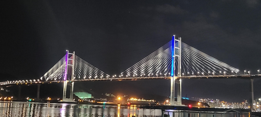 (창원=연합뉴스) 황봉규 기자 = 마창대교 운영사인 주식회사 마창대교는 경남 창원시의 랜드마크인 마창대교의 야간 경관조명을 새로 단장했다고 1일 밝혔다.