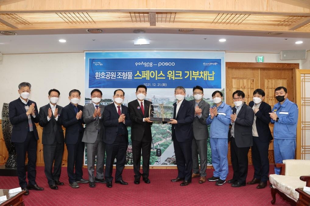 시는 21일 포스코로부터 스페이스워크를 기부받아 계약서와 기부영수증을 주고받는 행사를 했다.