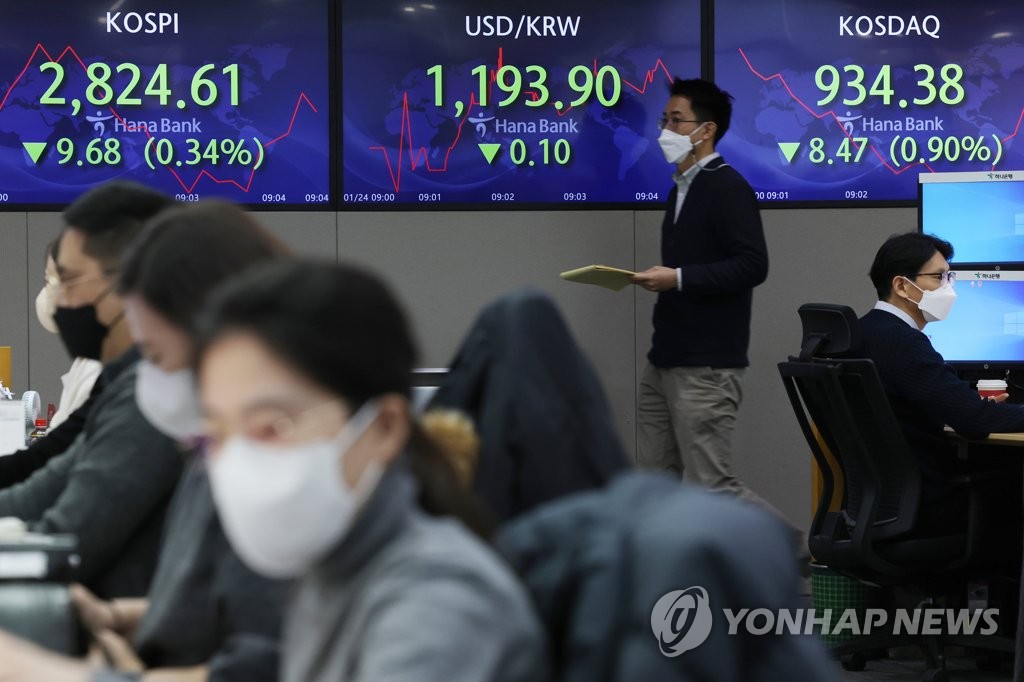 | ▲ This Jan. 24, 2022, photo shows a dealing room at Hana Bank in Seoul. (Yonhap) |