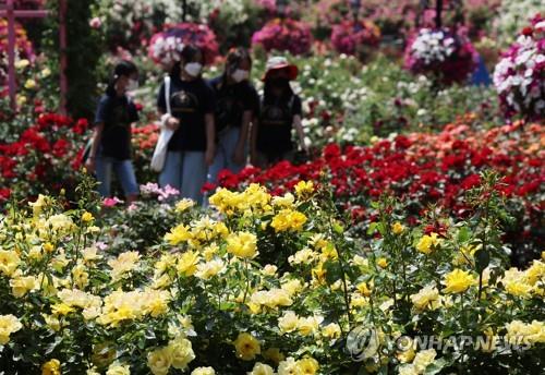 경기 용인 에버랜드를 찾은 시민들은 장미원을 메운 720품종, 300만 송이 장미를 감상하고 버스킹 공연을 감상했다.