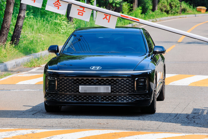 A vehicle carrying a special counsel team exits Seoul Detention Center in Uiwang, just south of the capital, on Aug. 1, 2025, after the team failed to execute a detention warrant for jailed former President Yoon Suk Yeol. Yoon resisted the team's attempt to detain him by lying on the floor of his prison cell wearing only his underwear, the team said. (Pool photo) (Yonhap)