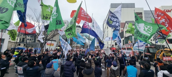 People stage a rally to call for President Yoon Suk Yeol's impeachment by the Constitutional Court in Gangneung, about 170 kilometers east of Seoul, on Feb. 15, 2025. (Yonhap)
