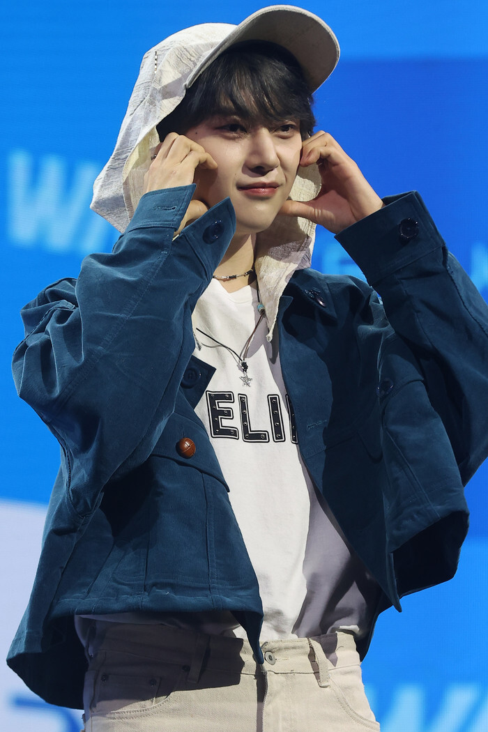 Seok Matthew, a member of South Korean boy group Zerobaseone, poses for a photo during a showcase for the group's mini album "Blue Paradise" in Seoul on Feb. 24, 2025. (Yonhap)