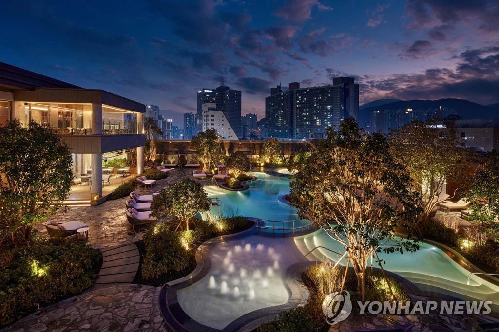 | ▲ 부산롯데호텔 아웃도어 스위밍풀 야경 [부산롯데호텔 제공] |