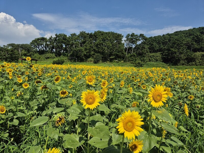 높이 1m 정도의 왜성 해바라기 꽃밭이 이달 중순부터 만개해 9월 초까지 감상할 수 있다고 동구는 설명했다.