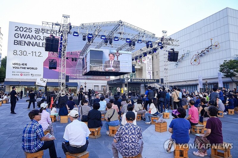 | ▲ 2025 광주디자인비엔날레 개막 (광주=연합뉴스) 29일 오후 광주 북구 광주비엔날레 광장 특설무대에서 열린 2025 광주디자인비엔날레 개막식에서 강기정 광주시장이 환영사를 하고 있다. 2025.8.29 [광주시 제공. 재판매 및 DB 금지] hs@yna.co.kr |