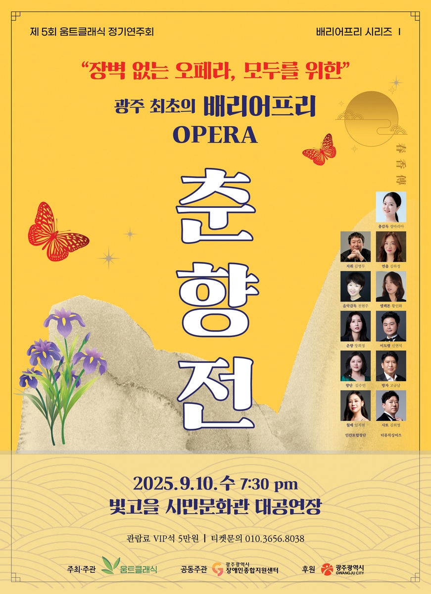 광주 첫 무장애 오페라 '춘향전' 9월 10일 공연
