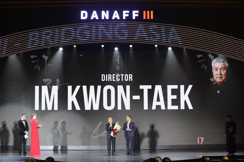 | ▲ 임권택 감독, 다낭아시안영화제 평생공로상 수상 지난달 29일(현지시간) 베트남 다낭시에서 개막한 제3회 다낭아시안영화제(DAFF 2025)에서 임권택 감독이 평생공로상 수상자로 선정돼 김동호 전 부산국제영화제 위원장이 대리 수상하는 모습. 2025.07.01 [주베트남 한국문화원 제공. 재판매 및 DB 금지] |